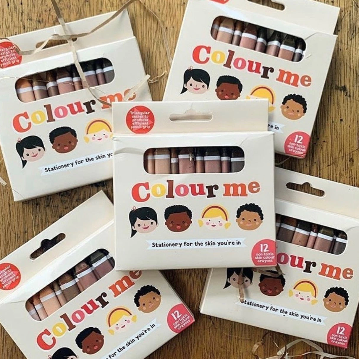 Colour Me Kids crayons, 12 wasco’s in verschillende huidskleuren om de diversiteit van onze regenboogmaatschappij te vieren, we zijn meer dan alleen perzik of bruin.