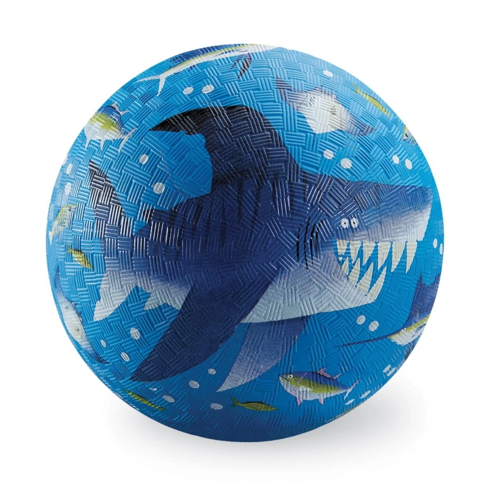 Een rubberen Crocodile Creek speelbal met haaien voor buiten en binnen! De speelbal heeft reliëf, dit zorgt voor extra grip. Baby’s, peuter en kleuters spelen, rollen en gooien over met deze mooie bal.
