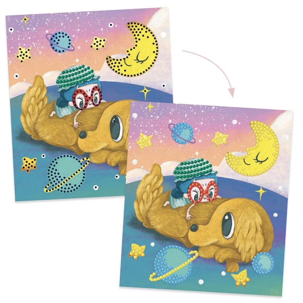 DJECO knutselpakket artistic diamonds om de mooiste diamond paint kunstwerken mee te maken. Het werken met plakdiamantjes is een precies werkje, een knutselset waar je even mee vooruit kan!