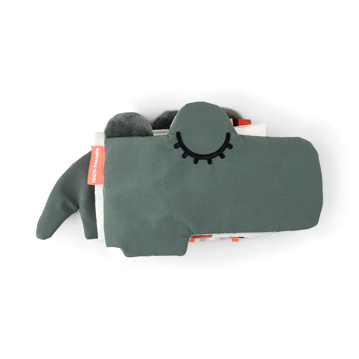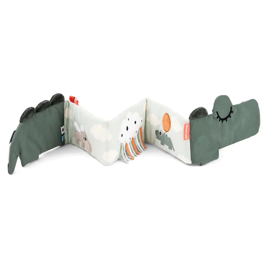 XL activiteitenboekje van Done by Deer in de vorm van een krokodil, je baby kan zich heerlijk vermaken met dit super leuke croco boekje, ideaal speelgoed voor onderweg in de auto of buggy. Uitgevouwen is dit boekje 90 cm lang, genoeg te ontdekken!