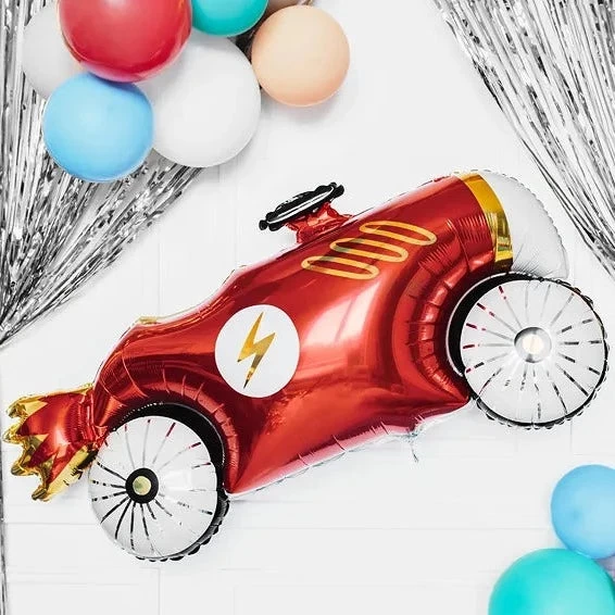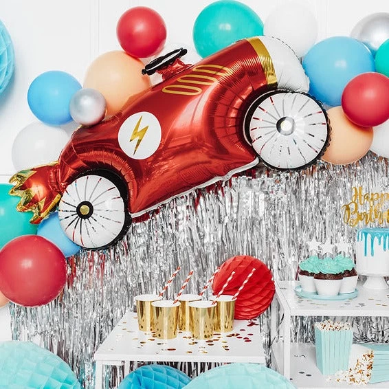 Grote Folie ballon in de vorm van een auto, om te vullen met helium of lucht. Opgeblazen is de rode auto ballon met goudfolie details 93 cm breed! Een folie ballon is een een leuke decoratie voor een kinderverjaardag of feest.