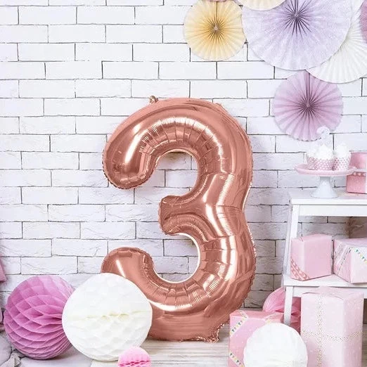 XL folie ballon cijfer 3, deze metallic roze cijfer ballon kan gevuld worden met helium of lucht. Een cijfer folie ballon is de perfecte decoratie voor elke verjaardag! Met de losse cijfers vorm je de leeftijd van de jarige.