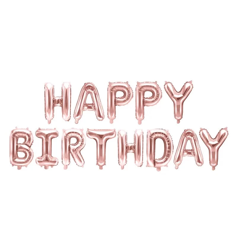 Roze folie ballon slinger met 13 ballonnen die samen de woorden Happy Birthday vormen. De folie ballonnen kunnen gevuld worden met helium of lucht. De 13 metallic roze ballonnen zijn 35 cm hoog, de totale lengte van de slinger is 340 cm.