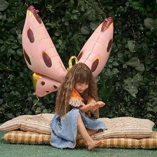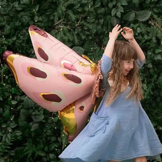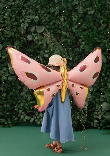 Folie dieren ballon in de vorm van een vlinder, om te vullen met helium of lucht. Opgeblazen is de butterfly ballon met goudfolie details 110 cm breed! Een folie ballon is een een leuke decoratie voor een kinderverjaardag of feest.