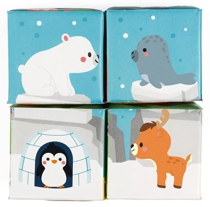 De 4 zachte blokken van 6 x 6 x 6 cm vormen 6 verschillende afbeeldingen. Op de badpuzzel zie je een schildpadje, draak en mooie pooldieren. Welke dieren ontdek je nog meer?