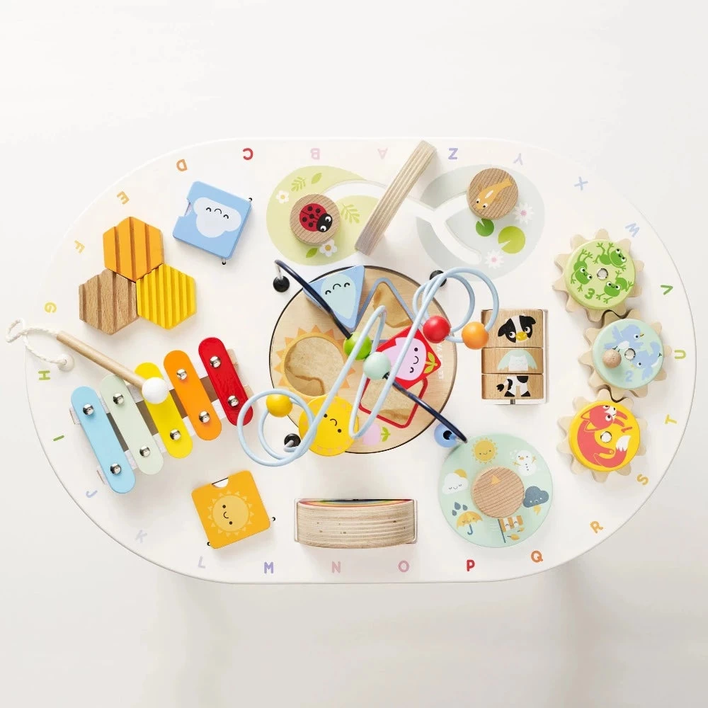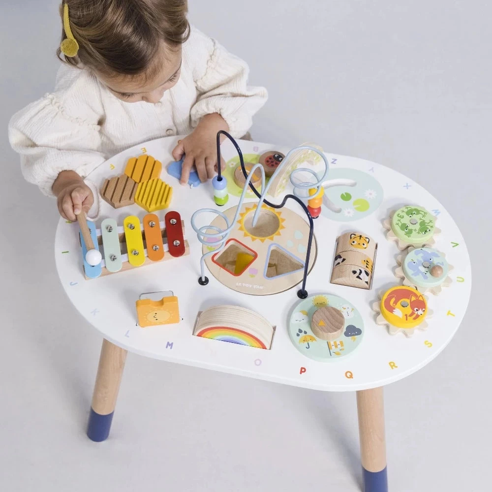 Een houten Le Toy Van speeltafel, een aanwinst voor de speelhoek of kinderkamer. Een multi functionele speeltafel voor peuters vol activiteiten om mee te spelen. Prachtig houten speelgoed en een mooi cadeau voor en eerste verjaardag.