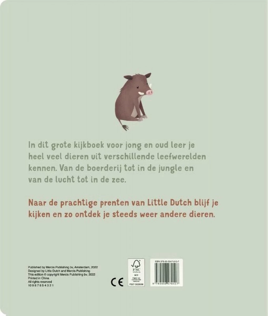 Little Dutch Mijn eerste dierenboek is een kijkboek met stevige kartonnen pagina’s om heel veel verschillende dieren te ontdekken.