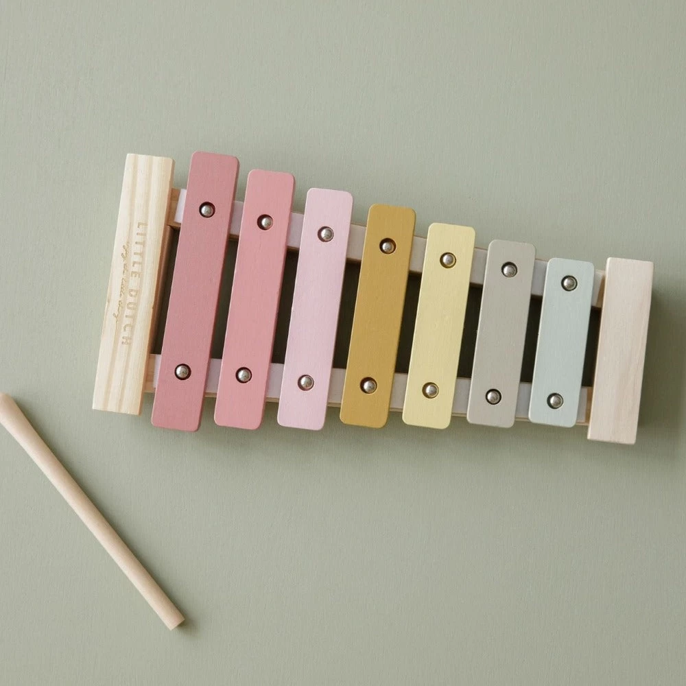 Little Dutch xylofoon, een houten speelgoed muziekinstrument in roze en naturel kleuren, Peuters worden kleine muzikanten, met dit vrolijke speelgoed instrument. Zeven verschillende muziektonen met verschillende houten toetsen die je bespeelt met het houten stokje.