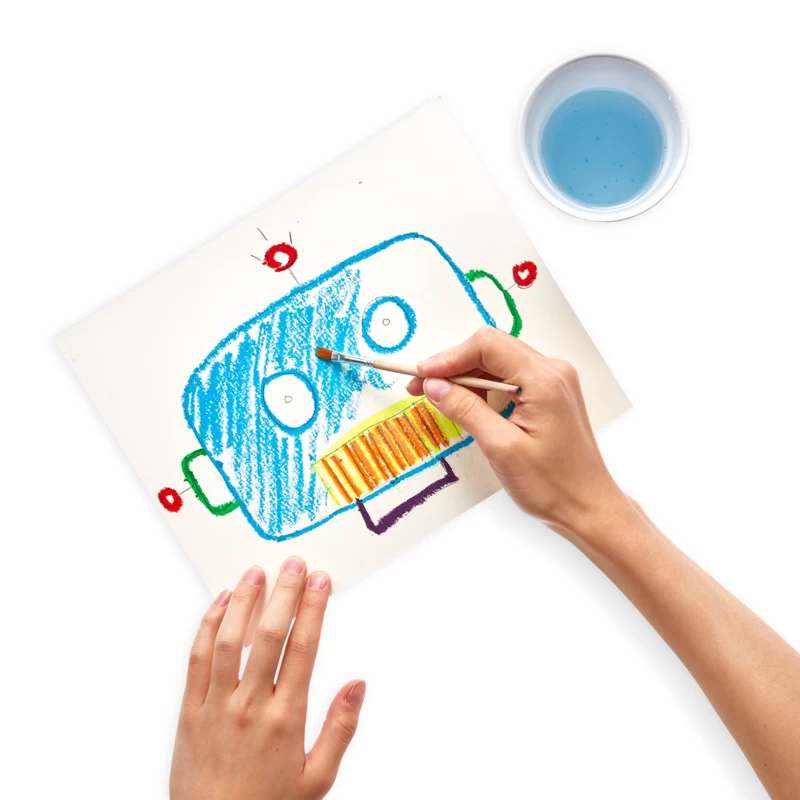 Ga met water over de tekening en zie een waterverf effect ontstaan, je kunstwerk is klaar!