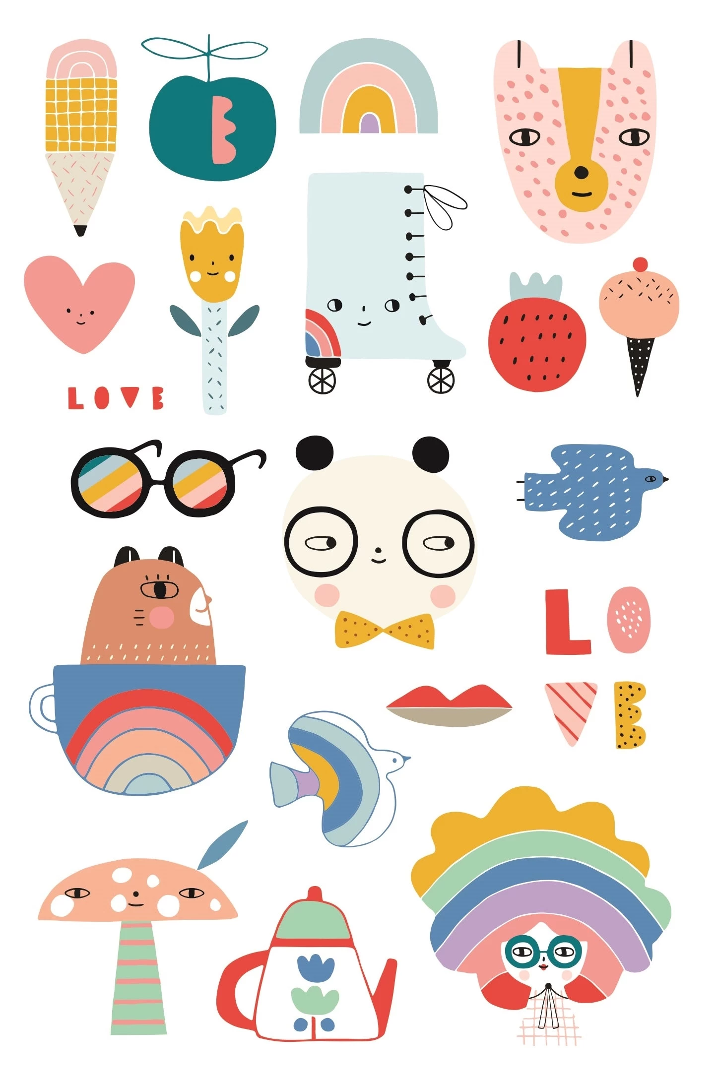 Een set van 2 vellen tatoeages van Petit Monkey Panda love. Deze set bevat 2 vellen vol panda’s, bloemen, ijsjes en love. Tijdelijke kindertattoo’s, wij vinden ze super leuk, en helemaal wanneer ze zo kleurrijk zijn.