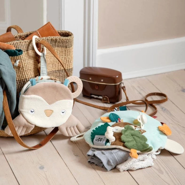 Sebra activiteitenboekje vol verrassingen met Blinbky de uil op de voorkant. Dit stoffen boekje zit vol activiteteiten en verrassingen, Deverschillende texturen din het boekje bevorderen de tastzin van jouw baby. Aan het boekje zit een ophangring waarmee je het boekje bevestigt aan maxi-cosi, box of wandelwagen.