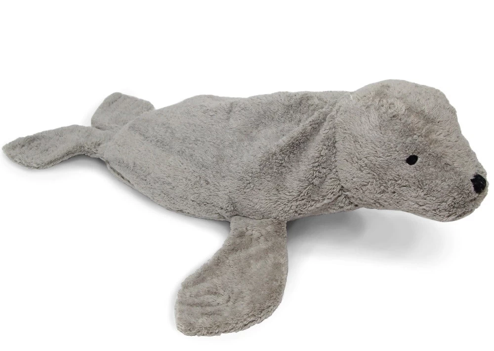 Senger Naturwelt warmte knuffel zeehond grijs, een zachte grote knuffel voor jouw baby, dreumes of kleuter veilig om te gebruiken vanaf 2 maanden, veilig om mee te knuffelen, te slapen, te spelen en zelfs om in de mond te steken.